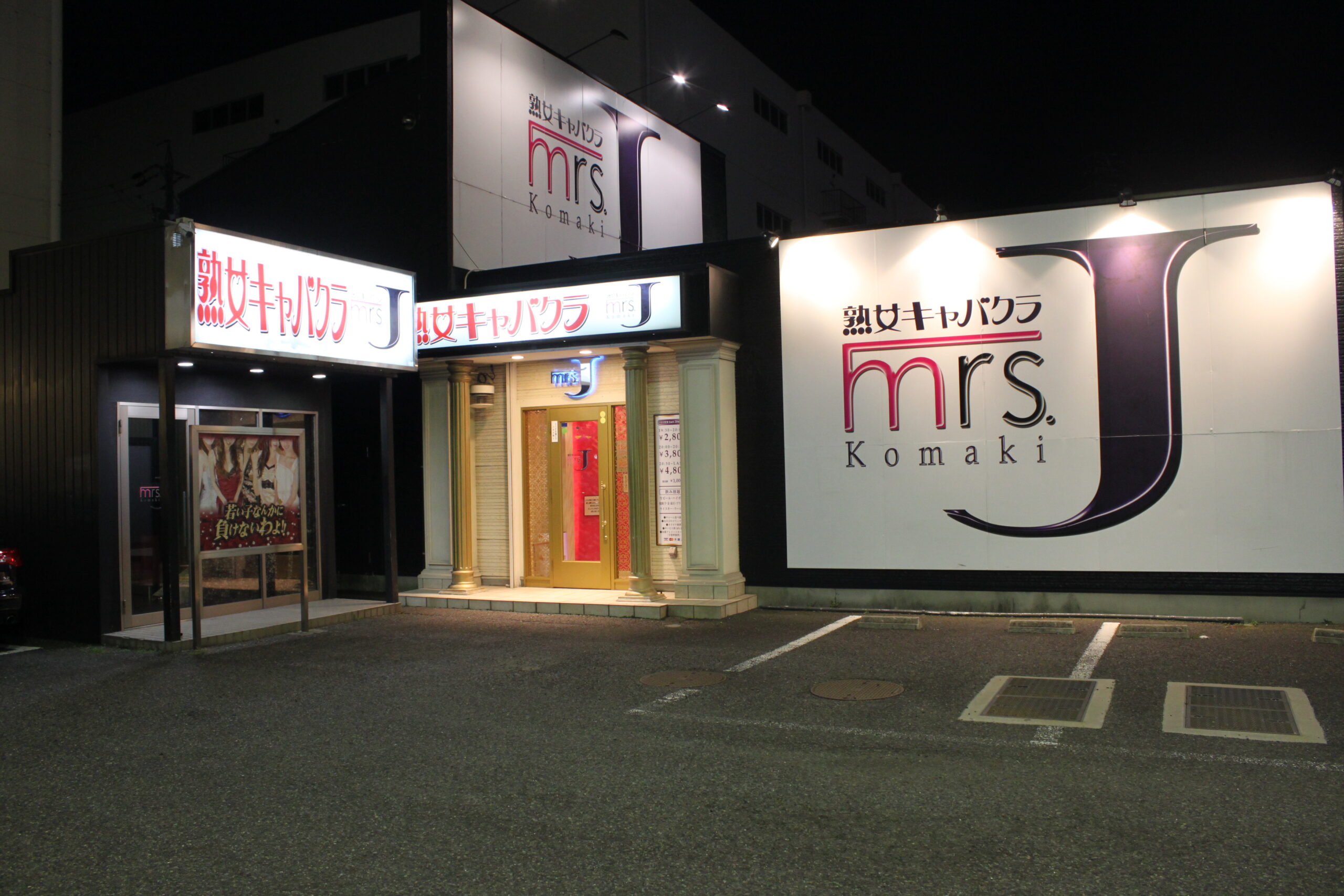 熟女キャバクラ ミセスJ 小牧は、愛知県小牧市の国道41号線沿いにあり、お店の前に大型駐車場を完備。お車でのご来店も便利です。セット料金もリーズナブルな設定になっておりますので、包容力と艶やかさを兼ね備えた大人のキャストが、あなたをお迎えします。足度の高い、特別なひとときをぜひご体感ください。
